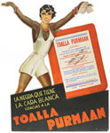 1930 ca. CARTEL: (PUBLICIDAD-DISPLAY). PADRON: TOALLA PURMAAN. Litografía. Display troquelado de 29 x 22 cm (11,5 x 8,5 in). Conserva el pie. [Más:] ALVAREZ: SUCHARD/ SAN SEBASTIAN. Tolosa: Graficas Laborde y Labayen. Litografía. 39 x 28 cm (15 x...