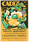 1954. CARTEL: (FIESTAS). CADIZ. FIESTAS FOLKLORICAS TIPICAS GADITANAS. GRANDIOSO DESFILE. Litografía. 49 x 33 cm (19,5 x 13 in). Antiguas señales de doblez, alguna manchita. A-.