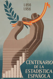 1956. CARTEL: CARMELO: 1856-1956. CENTENARIO DE LA ESTADÍSTICA ESPAÑOLA. Madrid. 100 x 70 cm (39 x 27,5 in). Litografía. Alguna rasgadura restaurada. A-. [Más:] UN PLEBISCITO PERMANENTE 1936- 18 DE JULIO- 1963. Madrid, 1963. Fotomontaje. 100 x 70...