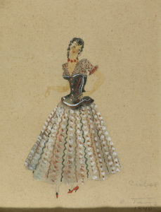 1940. ORIGINAL ARTÍSTICO: (ARTES ESCÉNICAS). [CALDERÓN DE LA BARCA, PEDRO]: 5 FIGURINES DE VESTUARIO ESCÉNICO DE LA DAMA DUENDE. Acuarela y tinta sobre papel. 20 x 15 cm. 5 originales artísticos para el vestuario de la célebre comedia de capa y...