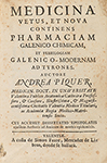 1766. LIBRO: (LOTE CONJUNTO-MEDICINA). PIQUERII ARCHIATRI, ANDREAE: MEDICINA VETUS, ET NOVA CONTINENS PHARMACIAM GALENICO CHIMICAM et febrilogiam galenico-modernam ad tyrones. Valentiae: Simon Faure, 1743 (en texto). 8º menor. 12 h. + 296 p....