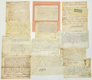 RÉGIMENTS DE LOUIS XIV. 12 Quittances ou certificats, in-8°, sur vélin ou papier, signés d’Officiers commandant les Régiment de Louis XIV : Le Comte d’ALAIS, Capitaine du régiment Ducal d’Infanterie de Piedmont, 1676 + D’ALBIGNY Aide de Camp du Maréchal de Villeroy dans l’Armée de Flandres, Camp d’Helsen 1693 + Nicolas ANDRAS Sieur de Brosse, Lieutenant au Régiment des Gardes du Roy, 1650 + Nicolas d’ARNOLFINY, Maréchal de Camp du Régiment de Cavalerie, 1616 + BARDON Major Commandant le Régiment du Maine Infanterie, Certificat de blessure à la Bataille de St-François près Strasbourg, Camp de Mersen près Anvers 1703 + Armand de BARLE de la FERRONAYS, Reçu de 7500 Livres pour la Levée d’une Compagnie de Chevau-Légers, composée de 50 hommes dans le Régiment de COURCELLES (90 Régiment de Cuirassiers), 1674 + Isac BARRIÈRE Capitaine d’une Compagnie de Gens de Guerre au Régiment de Navarin, Cazal (Siège de Cazals/Italie), 1640 + Charles LA BARTE, Commandant au Fort de St-André de SALINS (Jura), 1680 + Antoine Simon de BOISDAVID, Colonel au Régiment de Champagne, Certificat de services fait à VERDUN en 1677 + Nicolas BICARD, Garde de Sa Majesté la Duchesse de LONGUEVILLE, 1676 + Jacques BOISFRADIN Capitaine au Régiment de SAULT, 1669 + Gabriel BOLIFER VOYSINES Conseiller du Roi et Prévôt général de la Cavalerie de France, 1648