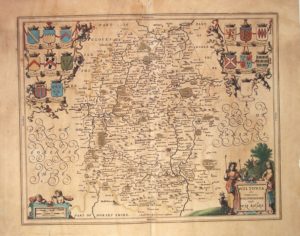 Carte XVIIe s. : ANGLETERRE. « Wiltonæ comitatus, vulgò WIL-SHIRE. » (Malmesbury, Chippenham hund, Westbury, Salesbury, Amesbury, Kinwaston…) (47 x 58,5 cm) État B.
