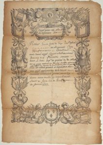 RÉGIMENT CORSE. 1680. CONGÉ MILITAIRE pour un Soldat Italien du Régiment CORSE. Fait à Ypres (Belgique) lieu de Garnison le 3 Janvier 1680. GUISTO Comte de GAZO Lieutenant Colonel au Régiment CORSE Infanterie certifie avoir donné congé absolu au nommé Dominique TRUQ Piémontais servant en ladite Compagnie en qualité de Soldat, … ayant été estropié au service de Sa Majesté. 1p gravée rempli à l’encre (38 x 27).