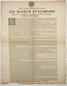 AISNE. 1727. GRENIERS DE SAINT-QUENTIN. Ordonnance « De par MM. Les Mayeur et Échevins, Juges …