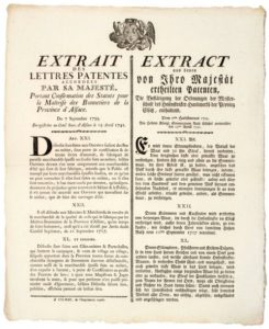 BONNETIERS D’ALSACE. 1741. COLMAR (68) - « Extrait des Lettres patentes accordées par Sa …