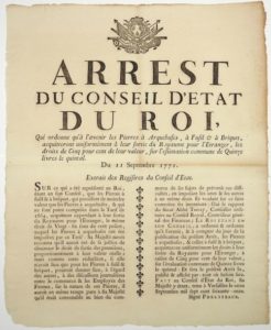 PIERRES À ARQUEBUSES, À FUSIL À BRIQUET, 1771. « Arrest du Conseil d’État du Roi, qui …