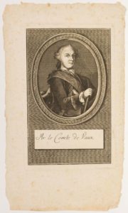 HAUTE-LOIRE. Noël JOURDA DE VAUX, Comte de VAUX, Seigneur d’Artias et de Retournac, Militaire, Maréchal de France en 1783 (Château de VAUX à Saint-Julien-du-Pinet/ Haute-Loire 1705 – 1788.). Gravure (21,5 x 12,5 cm)