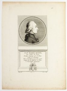 Claude Marie RUFFO, Des Comtes de LA RIC, Évêque, Seigneur de Saint-Flour, Comte de Brioude. Député du Bailliage de SAINT-FLOUR, à l’Assemblée Nationale de 1789 (Grenoble 1746 - 1816). Gravure (26 x 19 cm) Perrin del. Courbe sculp.