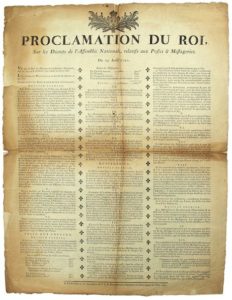 OISE. 1790. POSTES MESSAGERIES : « Proclamation du Roi, sur les décrets de l’Assemblée …