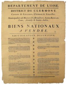 OISE. 1791. District de CLERMONT. ADJUDICATION DE BIENS NATIONAUX. « Département de l’OISE, …