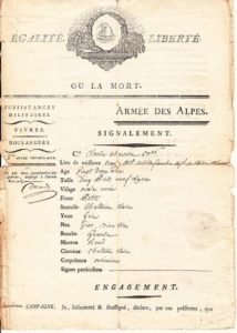 ARMÉE DES ALPES. BOULANGERS. Feuille d’engagement, 2ème Campagne, d’un Principal commis des …