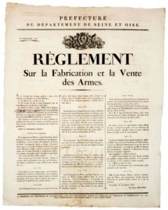 SEINE ET OISE. 1816. « Règlement sur la FABRICATION ET LA VENTE DES ARMES. » VERSAILLES (78) le …