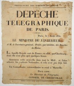 LES TROIS GLORIEUSES. 1830. DÉPART DES BOURBONS. BOUCHES-DU-RHÔNE – « Dépêche …