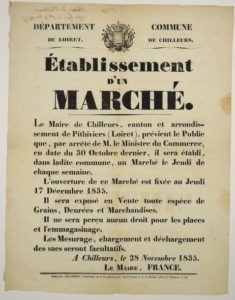 LOIRET. 1835. Commune de CHILLEURS - “Établissement d’un MARCHÉ. ... le jeudi de chaque …