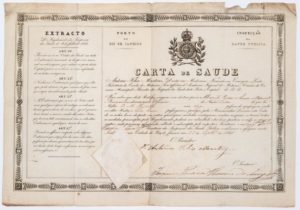 BRÉSIL. PATENTE DE SANTÉ délivrée par le Port de RIO DE JANEIRO pour se rendre à …