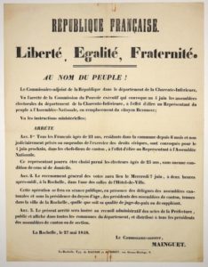 CHARENTE-MARITIME. LA ROCHELLE, le 27 mai 1848. Arrêté du Commissaire-adjoint MAINGUET …