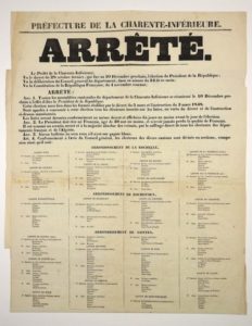 CHARENTE-MARITIME. ÉLECTION PRÉSIDENTIELLE DE 1848 – Arrêté du préfet WISSOCQ portant …
