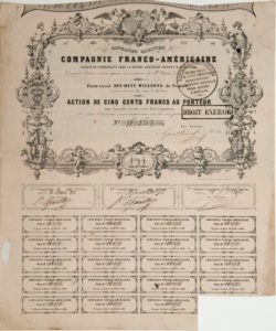NAVIGATION MARITIME. COMPAGNIE FRANCO-AMÉRICAINE - ACTION de Cinq Cents francs au porteur – …