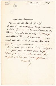 PRINCE NAPOLÉON, dit JÉRÔME (Napoléon-Charles-Paul BONAPARTE) Fils de Jérôme. Trieste 1822 - Rome 1891 - surnommé PLON-PLON - Ministre de l’Algérie et des Colonies le 24 juin 1858. Lettre Autographe signée de Dresde ce 19 mai 1857 - 1p in-8° à son chiffre : « ... Je pars à l’instant pour (Lupsen) on y conclura et demain je serai à Cologne. Le Ministre de France ici à ordre de m’envoyer les lettres qui arriveront de Paris. Il se peut que mon arrivée aie lieu le 21 ainsi que tout soit prêt dans ma maison. Je vous envoie des notes de Paris, mal faites, il lui faut plus de temps pour bien faire. Donnez de mes nouvelles à mon Père auquel je n’écris pas. Votre affectionné NAPOLÉON. »