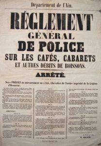 DÉPARTEMENT DE L’AIN. 1858. DÉBITS DE BOISSONS : « Règlement général de police sur les …