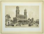 « PARIS DANS SA SPLENDEUR » (c. 1861). 5 Planches gravées : Église de la Madeleine, Colonne de la Grande Armée, Église St Sulpice, Parc de St Cloud, Palais de justice (défaut) - (à vue 33 x 49 cm)