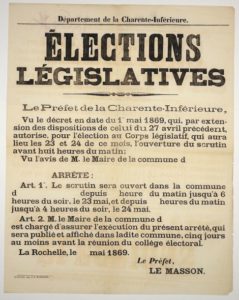 CHARENTE-MARITIME. 3 Affiches sur les Élections de 1869 : LA ROCHELLE (17) 15 mai 1869 « …