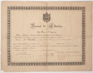 BREVET de LIBRAIRE, Second Empire, décerné le 1er juin 1870 à Alexandre Prudent ROSSLER, pour …