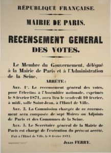 “MAIRIE DE PARIS” - RECENSEMENT GÉNÉRAL DES VOTES DU 8 FÉVRIER 1871 – Arrêté de JULES …