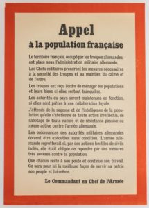 JUIN 1940 « APPEL A LA POPULATION FRANÇAISE » - Le territoire français, occupé par les …