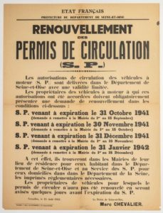 GUERRE 1939/1945. ÉTAT FRANÇAIS. SEINE-ET-OISE : “Renouvellement des PERMIS DE CIRCULATION …