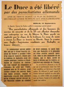(MUSSOLINI) «LE DUCE A ÉTÉ LIBÉRÉ » par des parachutistes allemands » Berlin 12 Septembre (1943) – « Le quartier général du Führer publie le communiqué spécial suivant » (48x60) État B