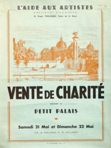 (PARIS 1949) VENTE DE CHARITÉ organisée au PETIT PALAIS 21 et 22 Mai 1949, pour l'Aide aux ARTISTES. Président d'Honneur. M. Roger VERLOMME, Préfet de la Seine - Imprimerie Municipale, 300 Exemplaires - Affiche (65 x 48) État A