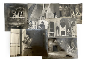 – 2 petits portraits de Jean Cocteau (photographies découpées, cachet studio Iris, 6,5 x 6 cm et 5,5 x 5 cm) et 3 plus grandes figurant des scènes du Sang d'un poète (15 x 21 cm, cachets Sacha Mansour au dos), légendées au dos : «Scène tirée du Sang d'un poète» : la cité Monthiers et l'acteur Enrique Rivero