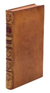 La Ligue ou Henry le Grand. A Genève, chez Jean Mokpap (Rouen, Viret), 1723 ; in-8 (192 x 123 mm), veau fauve, dos à nerfs orné, dent. int. (Reliure de l’époque).Édition originale de La Henriade. Le Petit 532. Bengesco I, 360.