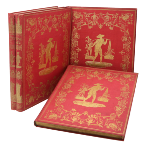 L'Empire chinois illustré d'après des dessins pris sur les lieux, avec les descriptions des mœurs, des coutumes, de l'architecture, de l’industrie ... du peuple chinois depuis les temps les plus reculés jusqu’à nos jours par Clément Pellé. Londres et Paris, Fisher Fils, s.d. [1843-1845]. 4 volumes in-4 (275 x 214 mm). Cartonnage de l’éditeur percaline rouge illustrée d’une plaque dorée, signature de l'éditeur en pied du dos, tranches dorées (280 x 225 mm). Édition originale. "Allom's illustrations, more than any other body of work up until that time, helped to provide a clearer picture of Imperial China".