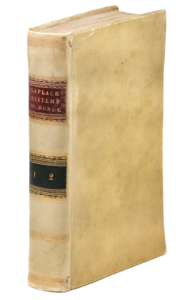 Exposition du système du monde. Paris, Imprimerie du Cercle-Social, an IV ; 2 parties en un vol. in-8° (199 x 124 mm), vélin de l'époque, pièces de maroquin rouge et vert au dos (Reliure de l’époque)Édition originale.