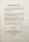 Journal D’un Voyage au Cap de Horn, au Chili, au Pérou, aux Iles Philippines, et à la côte de la Nouvelle-Espagne... A Paris, Chez Firmin Didot, Imprimeur du Roi, 1815. In 4 (252 x 200 mm). Maroquin bleu à grain long, décor doré, dos lisse avec décor doré, dentelle intérieure, tranches dorées (Reliure de l'époque). TRÈS BEL EXEMPLAIRE DE PRÉSENT SUR PAPIER VELIN, TRÈS ÉLÉGAMMENT RELIÉ EN MAROQUIN BLEU NUIT, D'UN RARISSIME LIVRE DE VOYAGE MARITIME : un seul exemplaire signalé dans les bibliothèques françaises (BNF, G-6531), aucun exemplaire dans Auction , aucun exemplaire dans Rare Book Hub depuis 45 ans (1978). Il s'agit probablement d'une impression à compte d'auteur tirée à un petit nombre d'exemplaires.