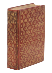 Exemplaire réglé qui a été placé dans une exceptionnelle reliure en maroquin rouge à décor de semé alternant initiales entrelacées et symboles d'amour et de fidélité.