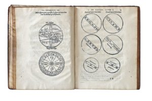 Le titre est orné d'un joli encadrement à cariatides et grotesques. Quant au texte, il contient 19 figures, sphères armillaires et diagrammes, y compris la Roue de Pythagore, le tout gravé sur bois, ainsi que de nombreux tableaux typographiques.