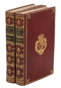 La Haye ; Paris, P.-Fr. Gueffier, 1768. 2 volumes in-8, maroquin rouge, triple filet doré, fleurons aux angles, armoiries au centre, dos lisse orné, dentelle intérieure, tranches dorées (Reliure de l'époque).Édition originale.