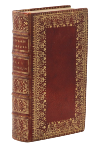 1726. In-12, maroquin rouge, large dentelle droite dorée, dos orné aux petits fers, doublure de maroquin olive ornée d'une large dentelle droite dorée, gardes de papier d'Augsbourg, tranches dorées (Reliure de l'époque).Édition originale, dont l'adresse rhénane dissimule, selon Weller, une impression parisienne.