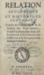 [FRANC-MAÇONNERIE] — Relation apologique et historique, contenant l'ordre et l'établissement de la société des francs-maçons, ce qui se pratique dans leurs assemblées, et les cérémonies qui s’observent à la réception d’un