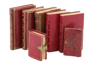 [ALMANACH]. London Almanack for the Year of Christ 1818. [Londres], Company of the Stationers, [1818]. Minuscule (56 x 32 mm), couverture-portefeuille à rabat et soufflet en basane maroquinée rouge, tranches dorées (Reliure de l’époque). Almanach entièrement gravé, orné de trois figures gravées, dont une sur 4 pp. Petites coupures et usures à la couverture.