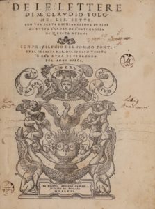 TOLOMEI (Claudio) — De le lettere, lib. sette. Con una breve dichiarazione in fine di tutto l'ordin de l'ortografia di cuesta opera.
