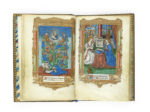 Cette édition présente la particularité de conserver des bordures et marges très pures, sans gravures ni compositions ornementales. De plus elle associe deux types de gravures, celles plus anciennes des incunables d’après les modèles du Maître des Très Petites Heures d’Anne de Bretagne (ou Maître de l’Apocalypse, parfois identifié comme Jean d’Ypres, fils de Colin d’Amiens ou Maître de Coëtivy, actif 1480-1510) commanditées pour un autre libraire Simon Vostre (cycle in-octavo pour Vostre, circa 1495-1498, voir Tenschert et Nettekoven, 2003) et celles plus dans le goût de la Renaissance réalisées d’après les modèles de Jean Pichore (cycle réalisé pour l’édition des Heures Pichore/De Laistre de 1503/1504 ; autre cycle réalisé pour Gillet Hardouyn en 1505-1506, voir Zöhl, 2004). Les livres d’heures imprimés constituaient plus d’un quart de la production globale d’Antoine Vérard et la présente édition témoigne de l’utilisation de cycles de gravures empruntées par Vérard à d’autres libraires-imprimeurs tels Vostre et Hardouyn. La datation des présentes Heures est difficile à évaluer : certes son Almanach couvre les dates 1503-1520 mais l’emploi des gravures d’après les modèles de Pichore, pour certaines datables après 1503/1504 suggère une datation un peu postérieure pour ces Heures proposées par Vérard. Si l’on accepte de plus que certaines autres gravures d’après Pichore ont été utilisées pour la première fois par Hardouyn en 1505-1506 et utilisées par Vérard seulement à partir de 1507 (voir Macfarlane, no. 238 ; Tenschert et Nettekoven, 2003, vol. II, pp. 537-538), il faudrait repousser la date de la présente édition après 1507. L’almanach pour les années 1503-1520 a servi dans un certain nombre d’impressions de Vérard associant les bois d’après le Maître des Très Petites Heures d’Anne de Bretagne et ceux de Jean Pichore, par exemple des Heures à l’usage de Paris, Paris, Antoine Vérard, datés 21 juin 1510 (voir Tenschert et Nettekoven, 2003, vol. II, no. 79). Le coloris du présent livre d’heures et celui de Tenschert (no. 79) présentent de réelles similitudes et peut être associés au style de Jean Coene IV (Maître des entrées parisiennes), un enlumineur actif entre 1500-1520, contemporain de Jean Pichore, étudié entre autres par E. König et I. Delaunay.
