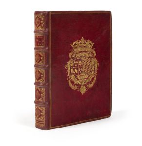 → Précieux et superbe exemplaire aux grandes armes de la dauphine Marie-Anne de Bavière (1660-1690), épouse du Grand Dauphin, fils de Louis XIV. Il porte le timbre humide figurant son chiffre couronné dans l’angle supérieur de la page de titre (Olivier, pl. 2523 pour les armes, avec variante dans l’écu de droite).