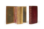 (167 x 101 mm). — Maroquin rouge, fer doré de la toison d’or au centre des plats, dos à nerfs ornés du même fer doré dans les entrenerfs, doublures de maroquin vert avec encadrement d’une roulette dorée, même fer doré au centre, tranches dorées sur marbrure (reliure de l’époque).