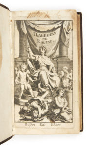 RACINE, Jean. — Œuvres de Racine. — A Paris, Chez Denys Thierry, 1687 — 2 volumes in 12 (165 x 95 mm) de [6] ff., 372 pp. ; [8] ff., 434 pp., [2] ff. — Veau brun granité, dos à nerfs orné, pièces de titre rouges, roulette dorée sur les...