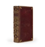 filet doré en encadrement des plats et fleurette aux écoinçons, dos à nerfs orné, roulette dorée sur les coupes et les chasses, tranches dorées (reliure de l’époque).